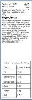 Simba Nik Naks Flamin Hot Chilli Flavoured 135g